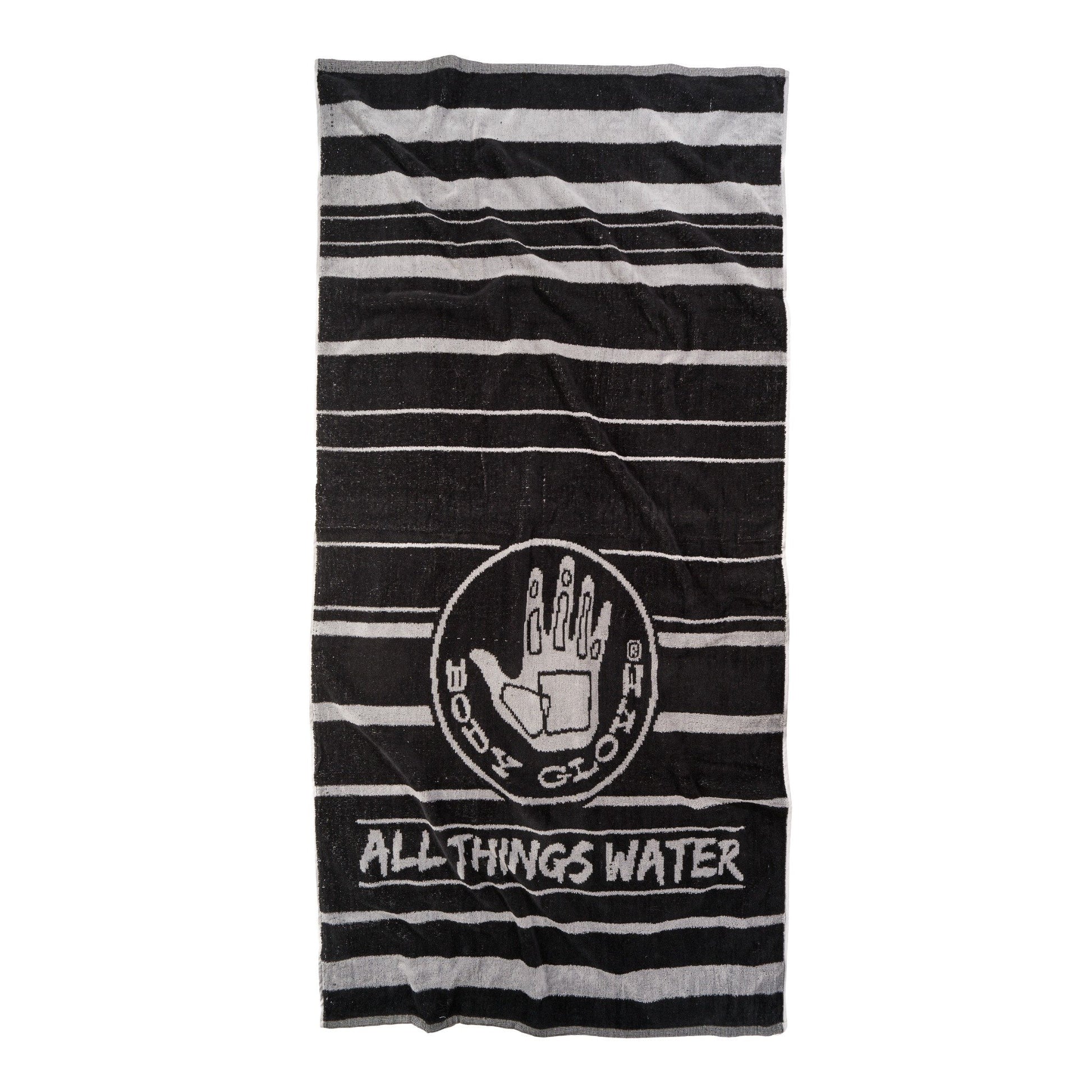 A soft, durable beach towel with bold contrast stripes and the classic Body Glove logo—perfect for beach days, boat days, and all things water.
