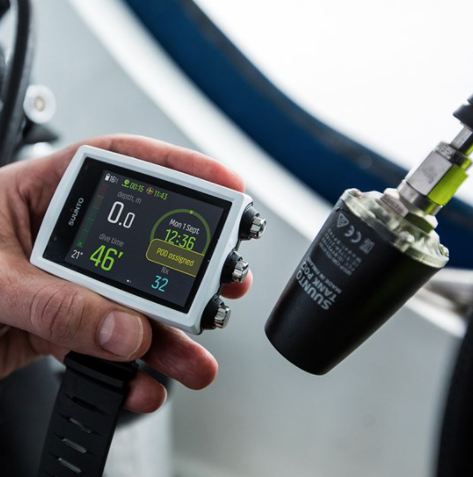 The pairing procedure is very intuitive; just pressurize the system and hold your Suunto D5, Suunto EON Steel or Suunto EON Core close to the Tank POD. All three Suunto dive computers can be connected to multiple PODs.
